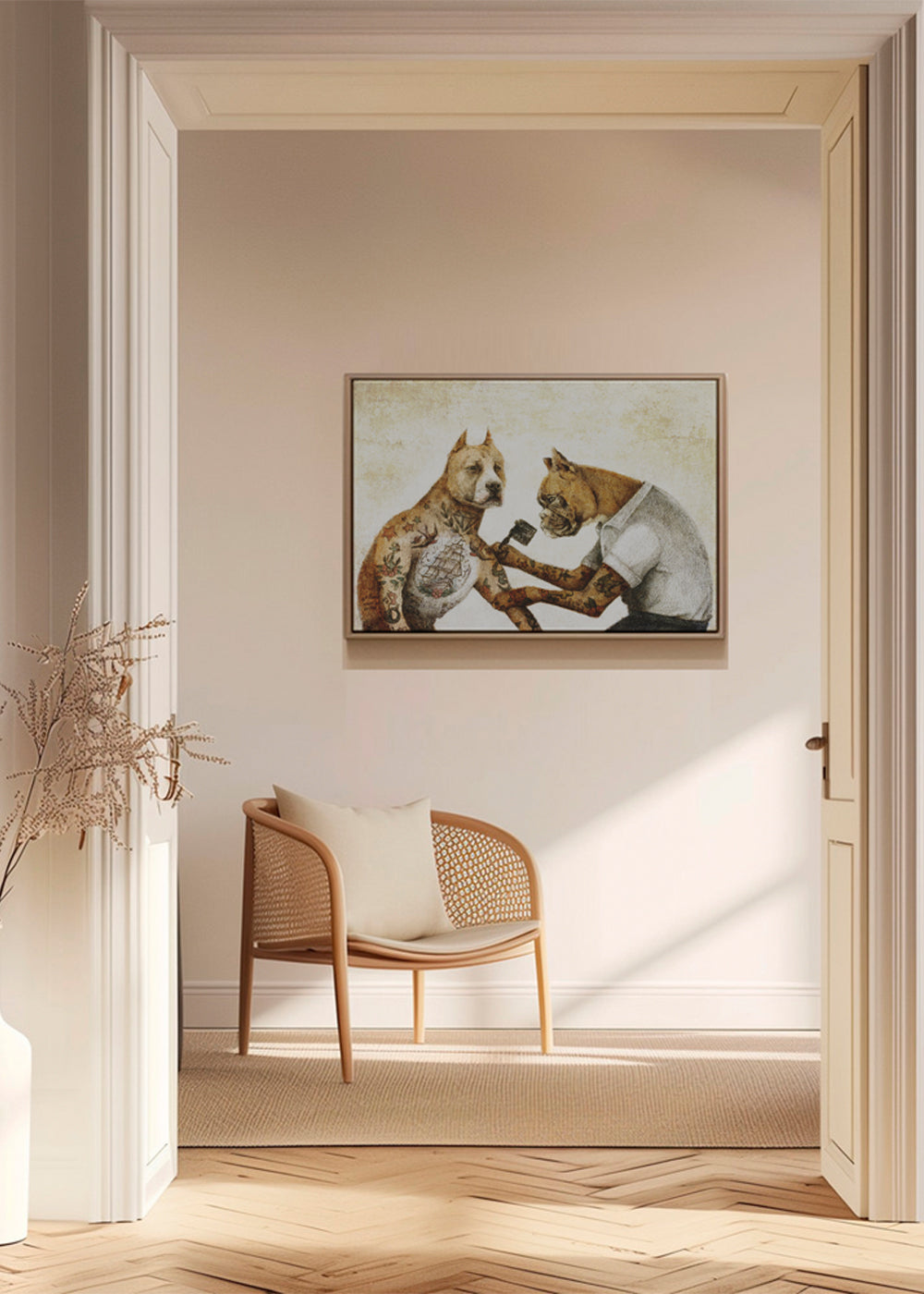 Canvas: printed on hand-stretched fabric for a more volumetric and artistic look, available with or without a frame.