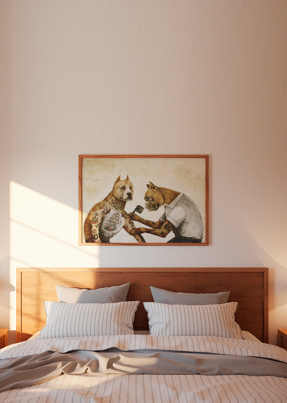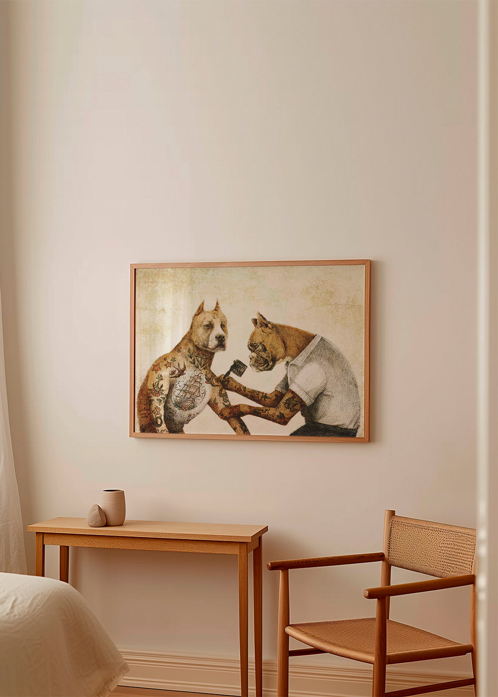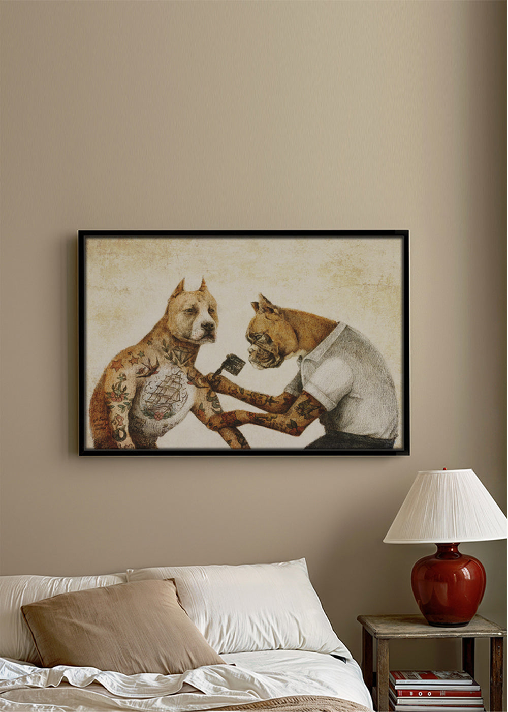 Print: premium 250 gsm art paper, ideal for framing or hanging with poster holders.