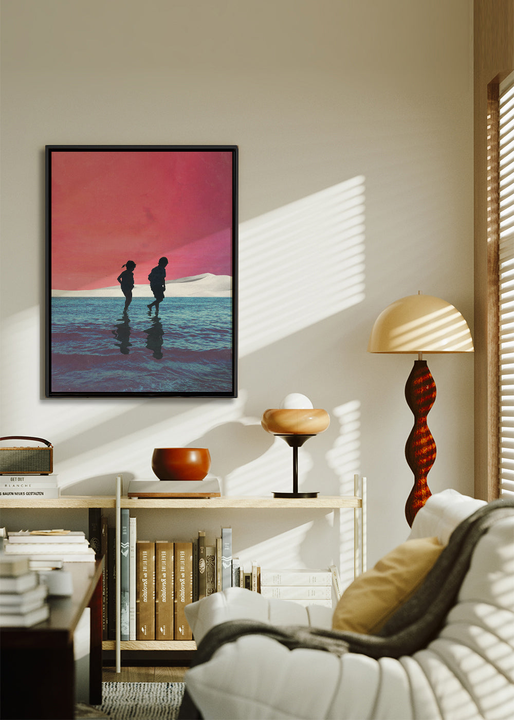 A print inspired by the collection of dreams wall art, from the mind of Frank Moth, with tones of pink, and with vertical layout. A retro style that is perfect for a vintage look. The print your wall has been looking for.