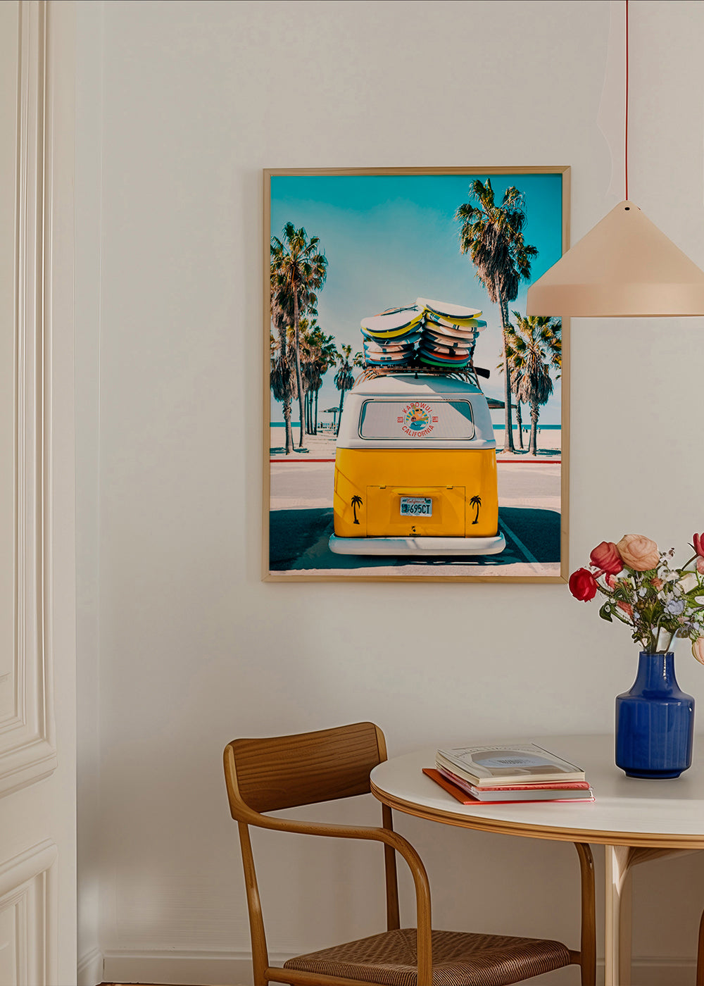 A poster in the style of our surf posters and wall art, by the artist Gal Design, with tones of blue, and with vertical layout. Nature is one of the best pieces of art around, don't you think? Combine our landscape prints for decoration that conveys freshness. Give your home a new look.