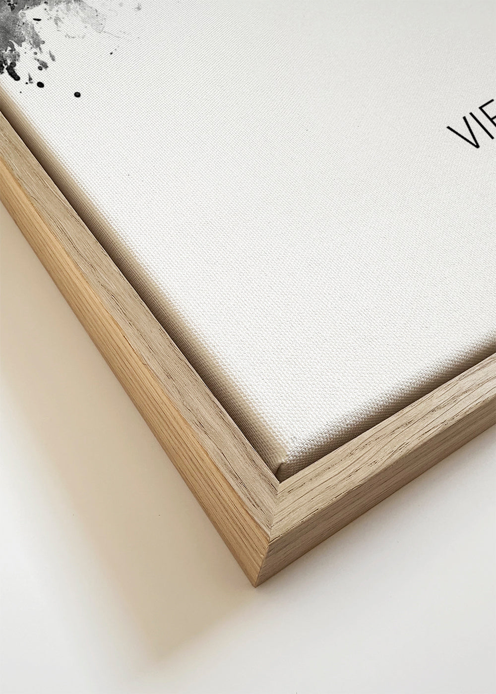 We work with solid wood and aluminium frames. All framed artworks are shipped already assembled and ready to hang. The front protection is made of high-clarity acrylic glass.