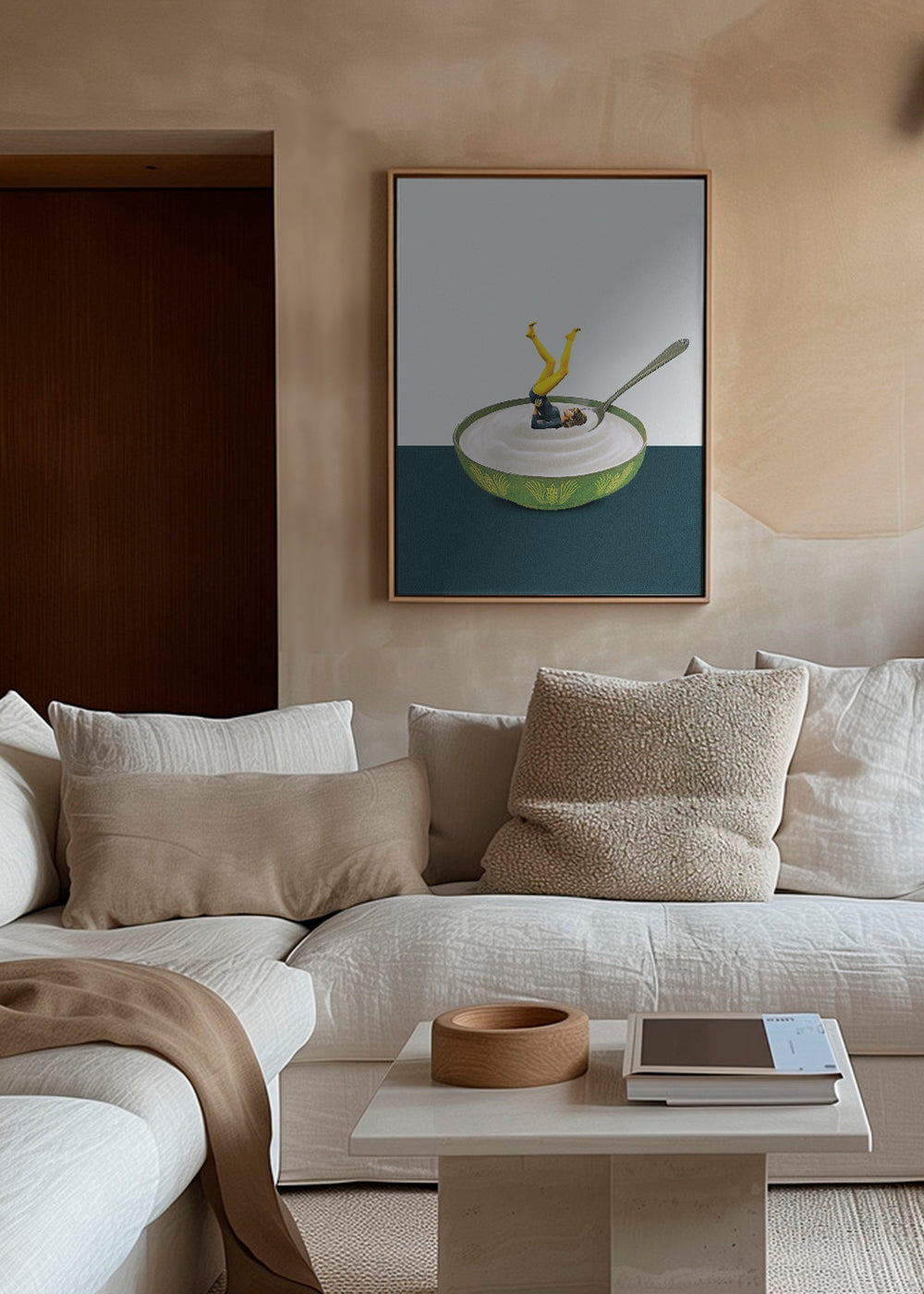 A print inspired by the collection of vintage wall art, from the mind of Maarten Léon, with shades of blue, and in vertical position. Vintage prints give a super chic touch to any space. Let art flood your home.