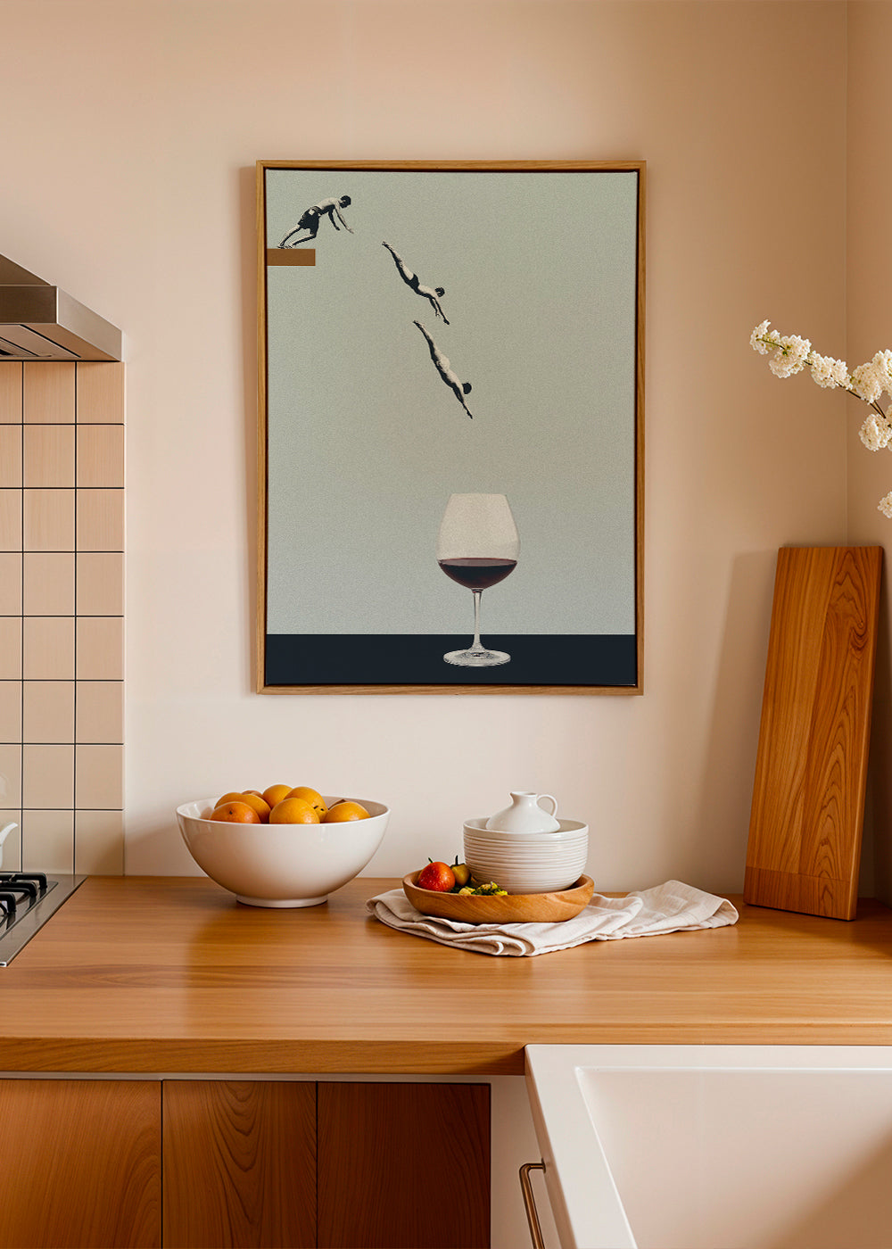Beautiful piece from the vintage wall art category, by Maarten Léon, with tones of blue, and perfect to hang vertically. Give your style a vintage touch by pairing this print with other retro-style posters. Create your favourite spot.