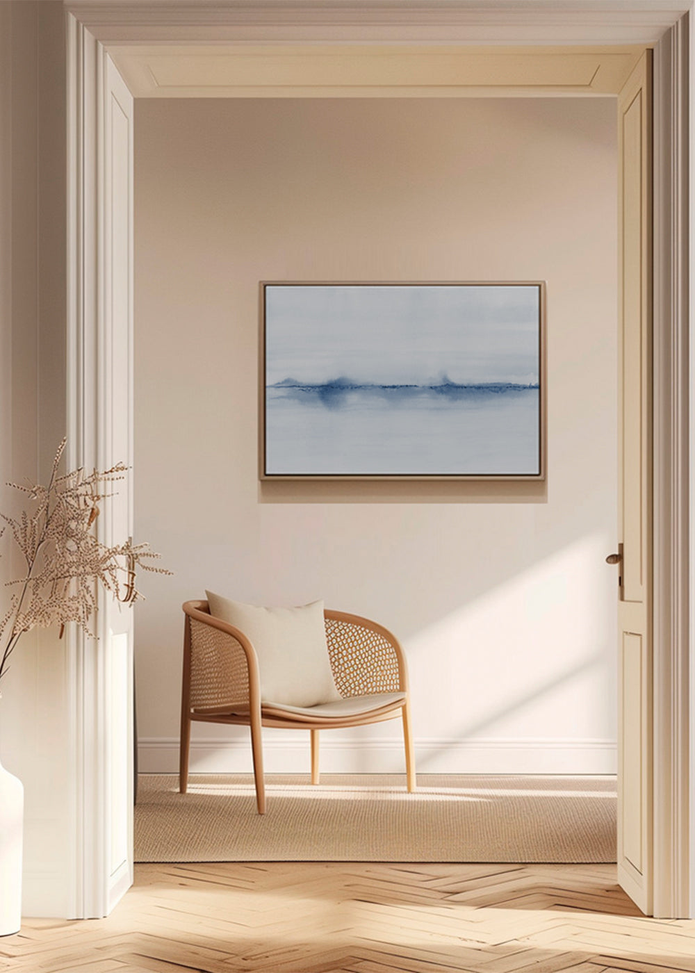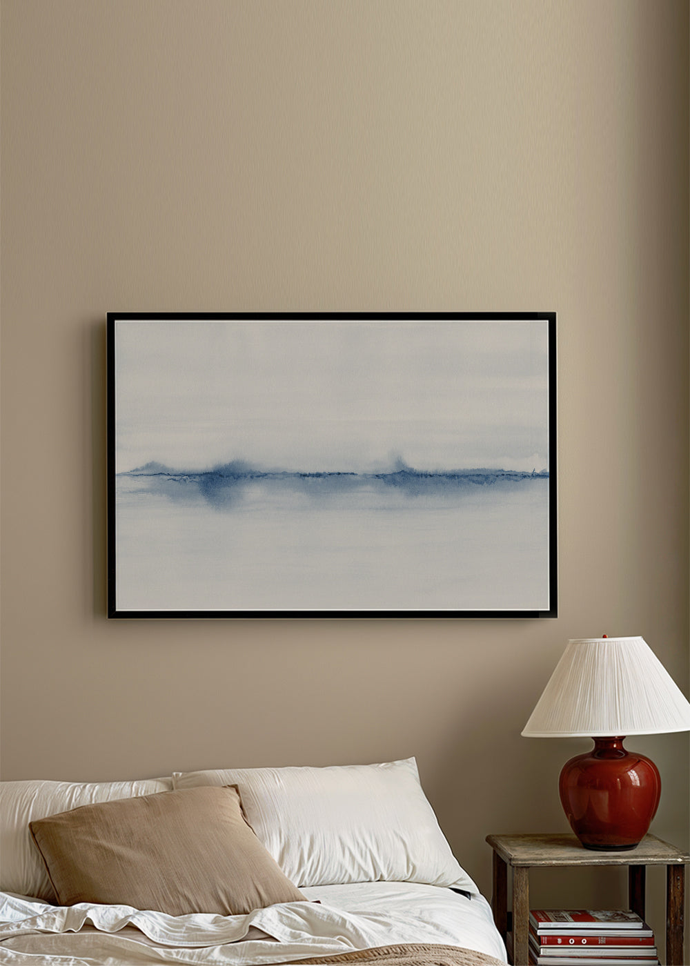 A poster from the landscape wall art category, created by Nouveau Prints, with tones of blue, and facing horizontally. Landscape decoration brings a breath of fresh air to any room. Let your walls tell a story.