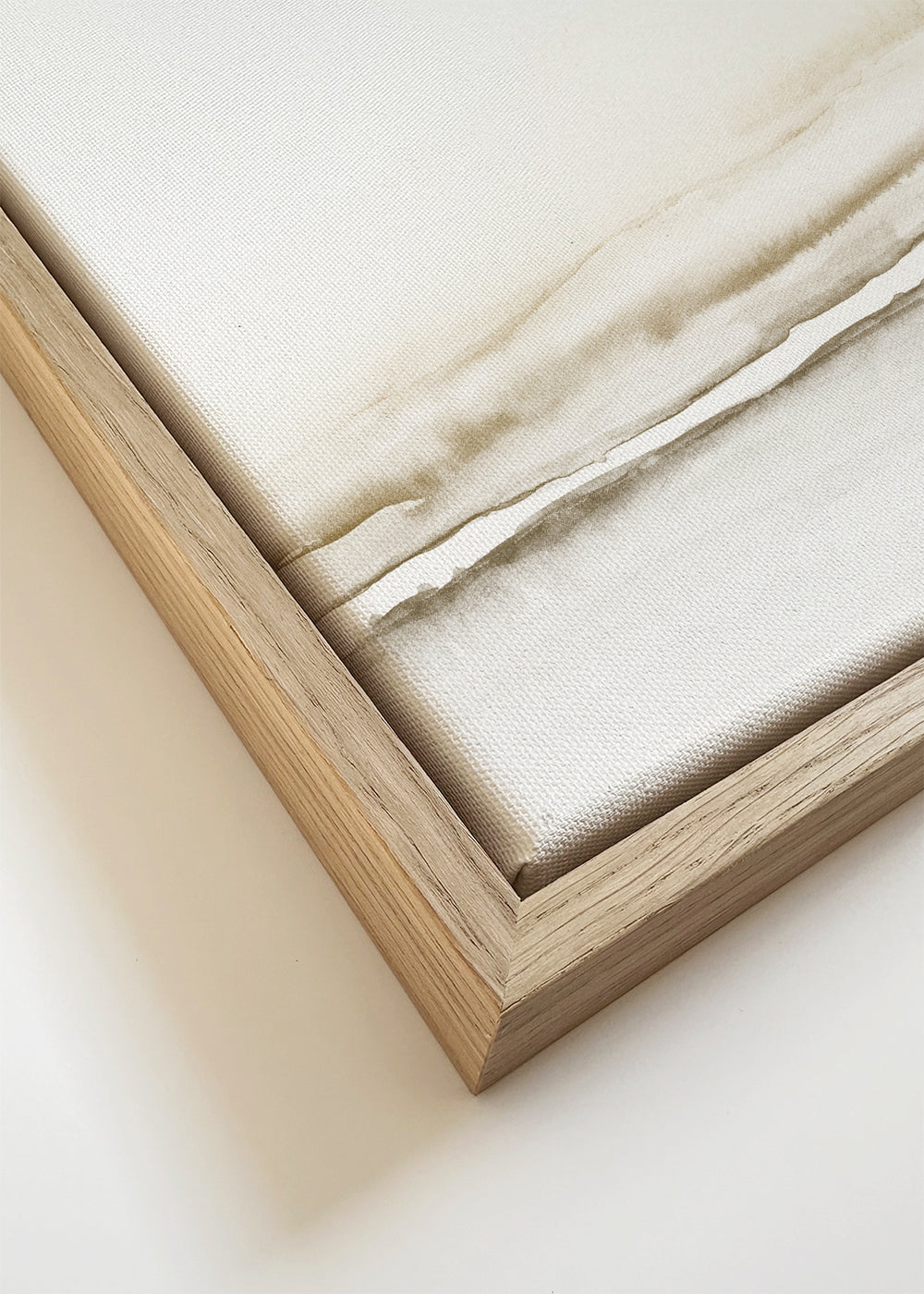 The wooden frames up to 20x28 in (included) have a width of 0.6 in and a depth of 1.2 in, while in the larger ones the width is 0.8 in and a depth of 1.2 in.