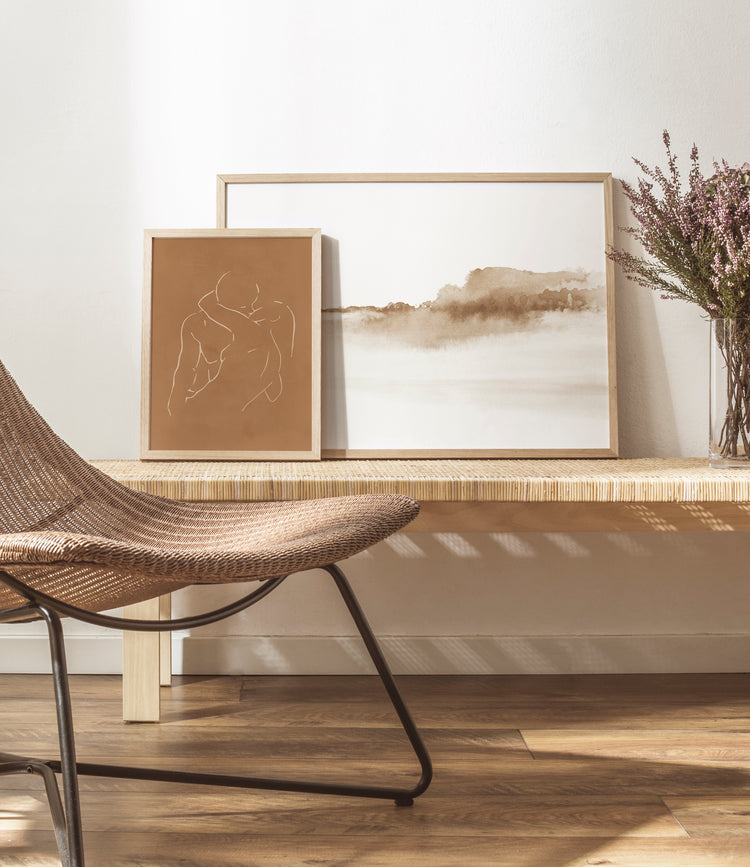 We work with solid wood and aluminium frames. All framed artworks are shipped already assembled and ready to hang. The front protection is made of high-clarity acrylic glass.