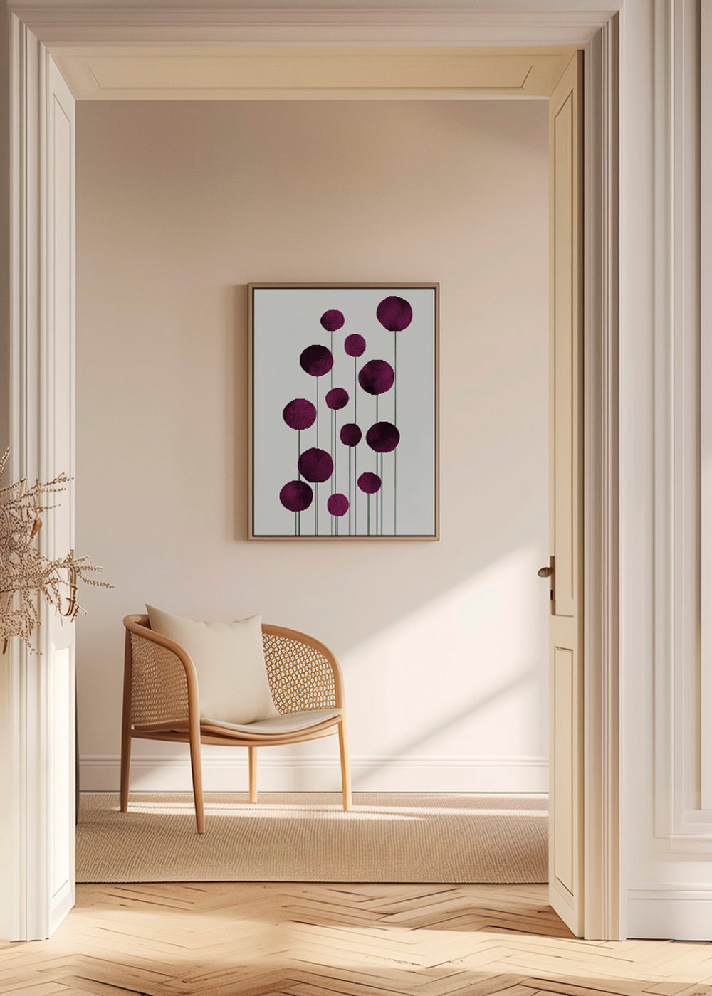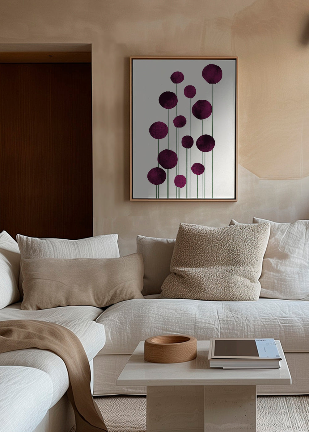 Beautiful poster from the botanical prints and wall art category, by creative artist Kubistika, with shades of purple, and perfect to hang vertically. Illustrated posters are perfect for pairing with minimalist and abstract art. Elegant walls for chic homes.