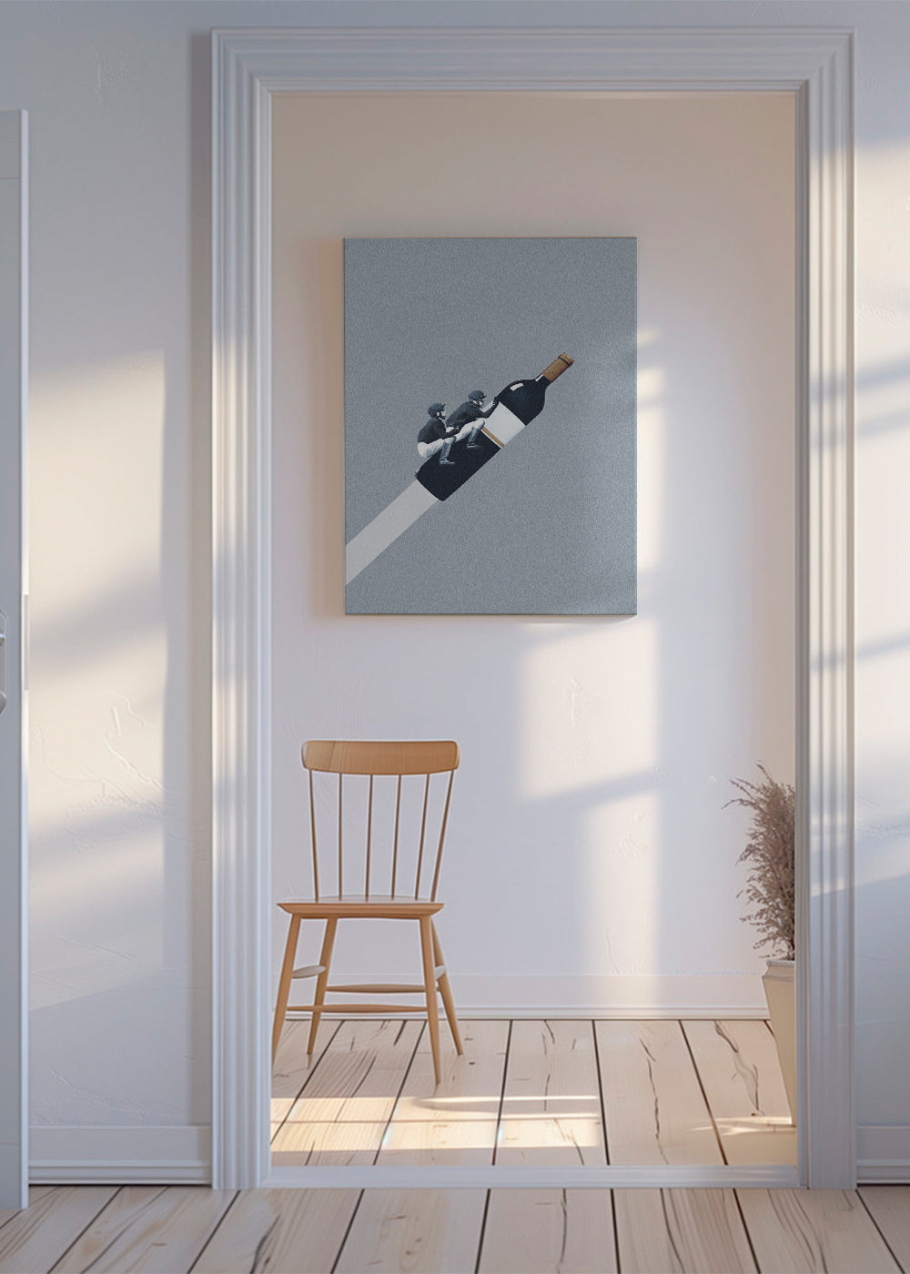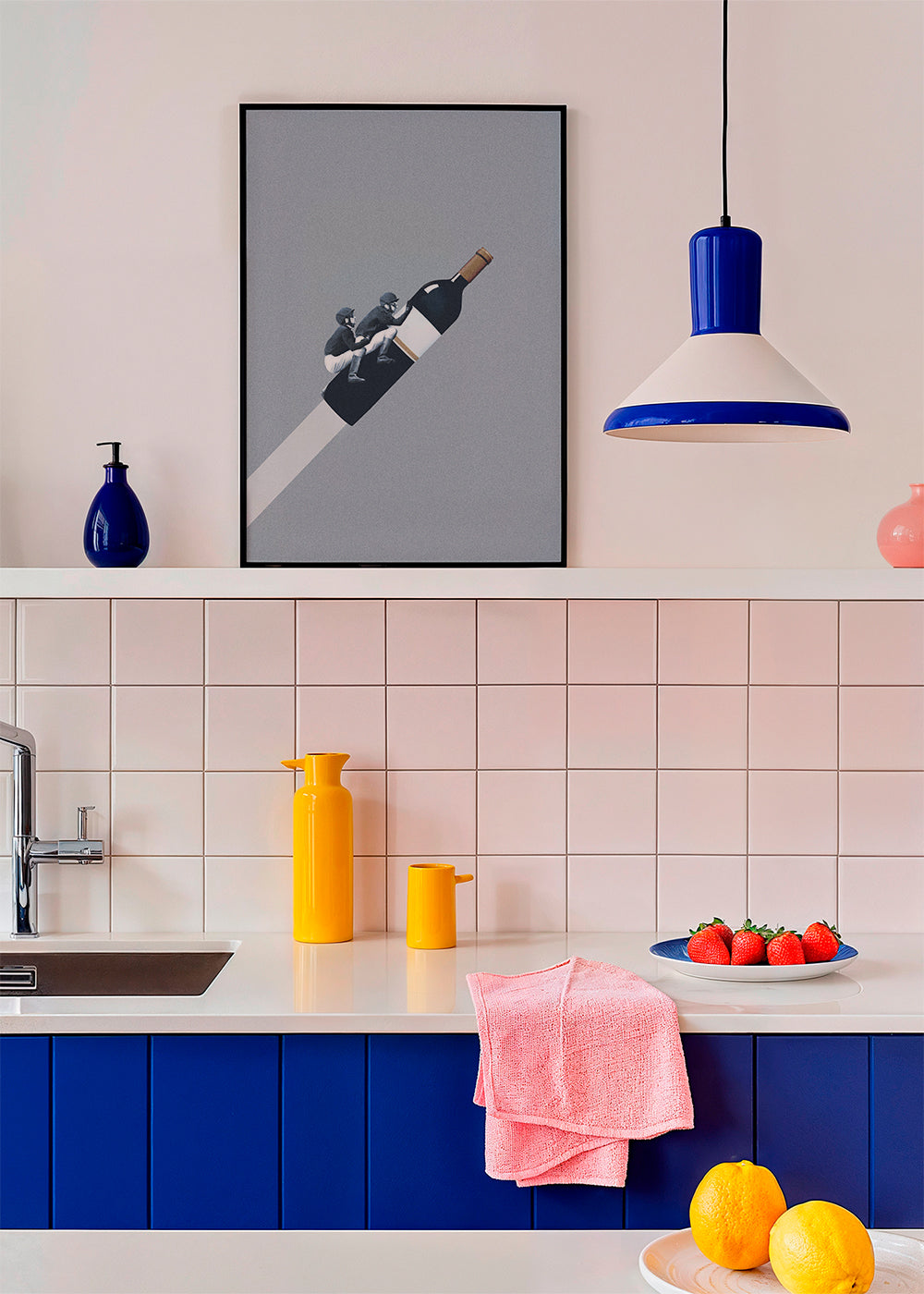 A piece from our selection of vintage wall art, by creative artist Maarten Léon, with touches of blue, and to hang in vertical position. Vintage prints give a super chic touch to any space. Walls full of creativity.