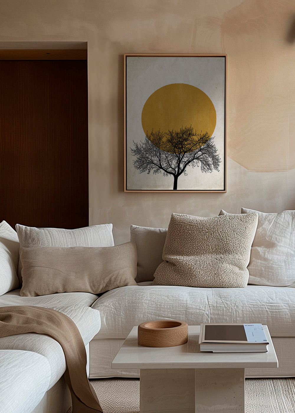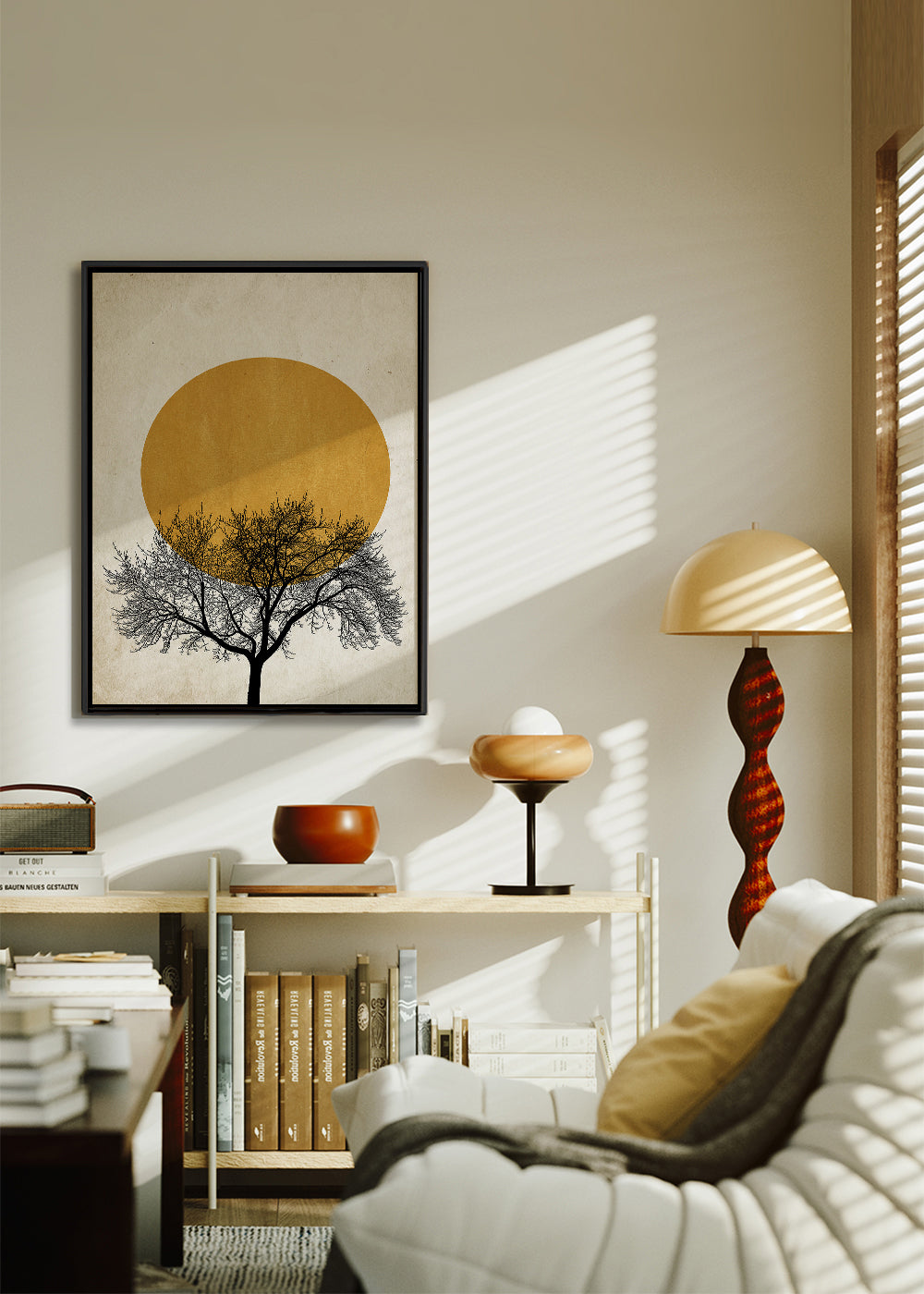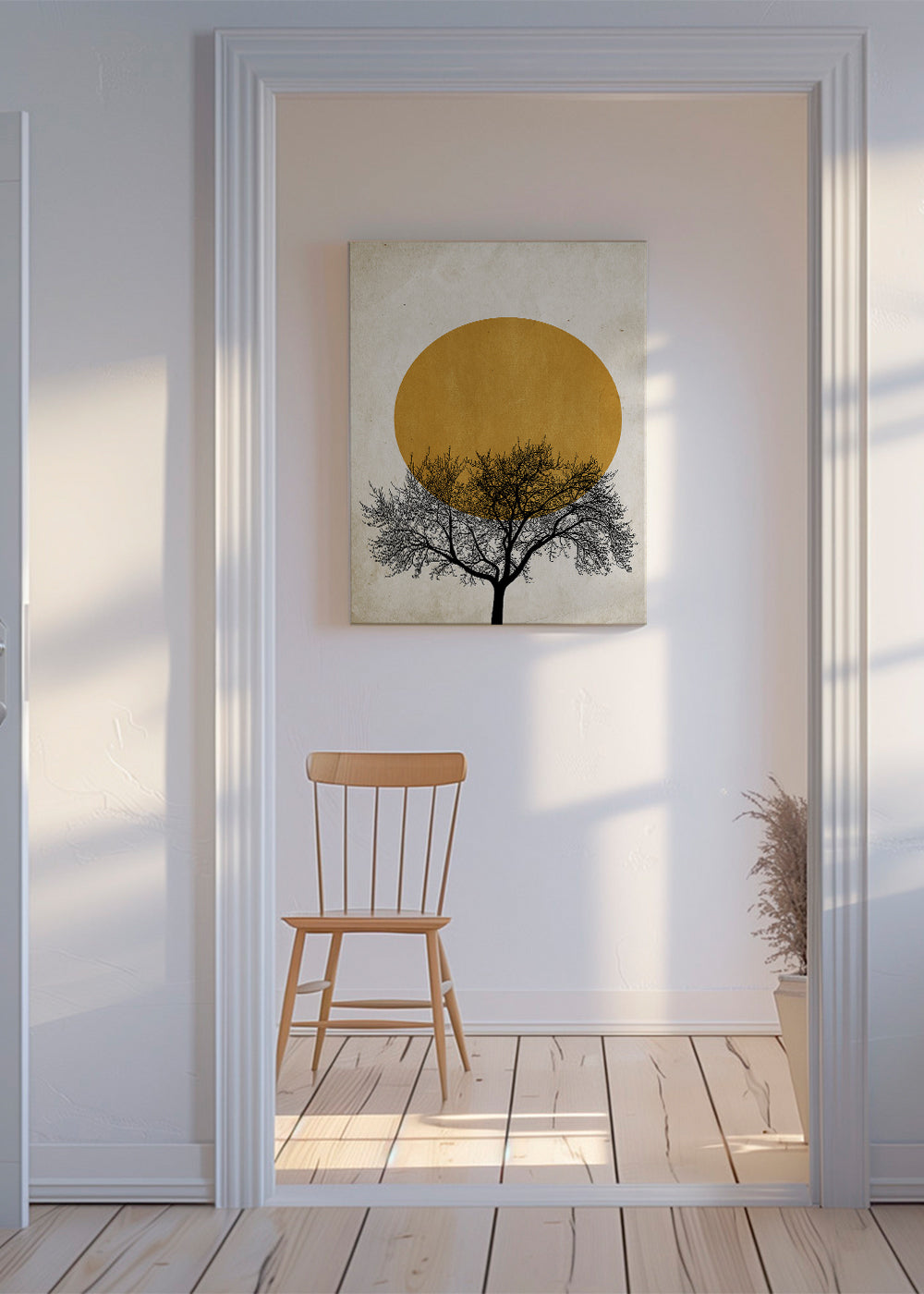 Beautiful piece from our selection of sunrise and sunset wall art, an original by KUBISTIKA, with shades of yellow, and perfect to hang vertically. This work fits in perfectly with mindfulness decoration, a great option for anyone who values peacefulness above all else in the home. A modern touch for your home.